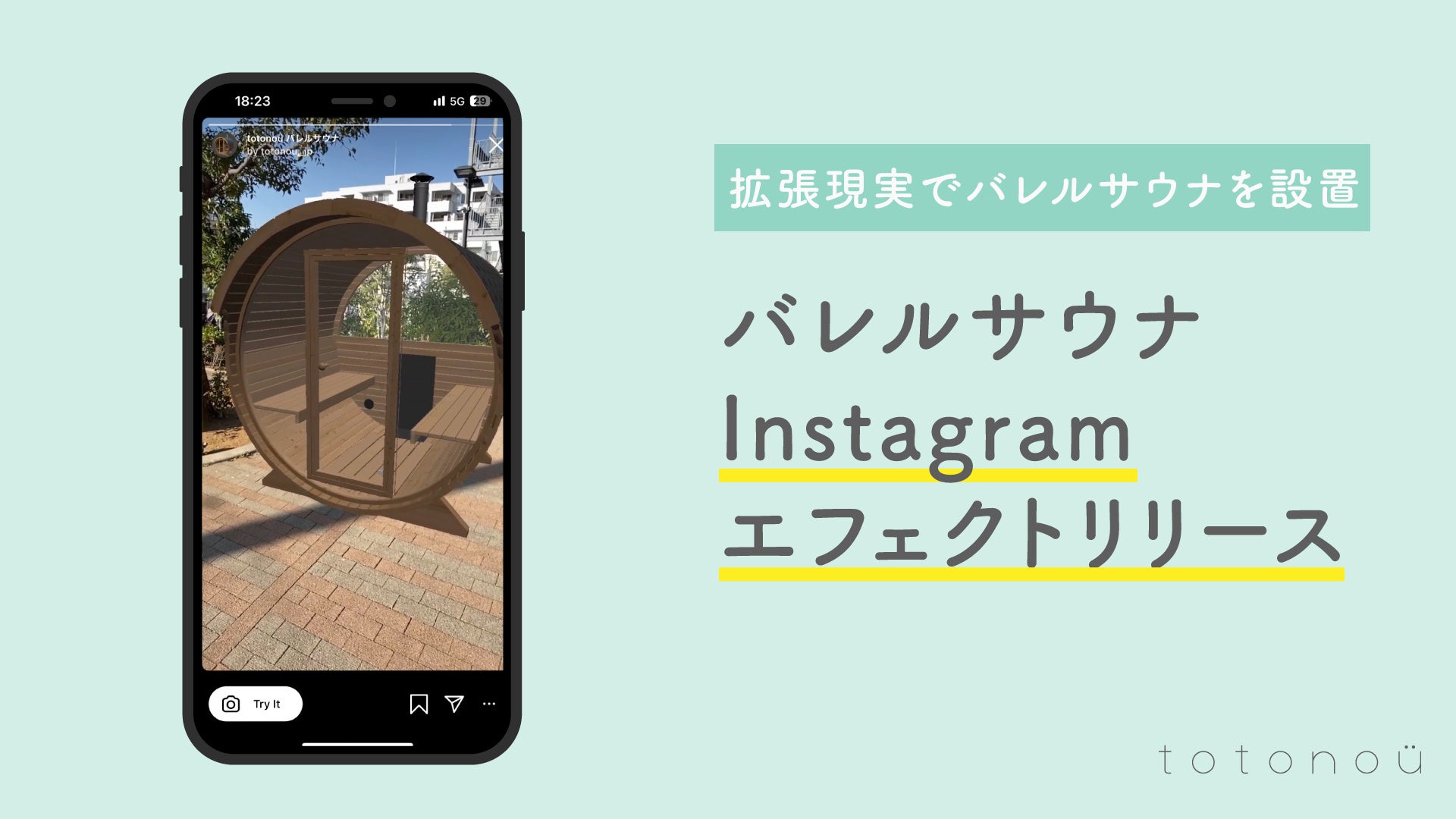 Instagramで使えるエフェクトも同時にベータリリースされ、バレルサウナを購入する前に実際の設置予定場所に投影することができるようになりました。最新のデジタル技術を活用することで、サウナ導入前後のミスマッチを防ぐことを目指します。