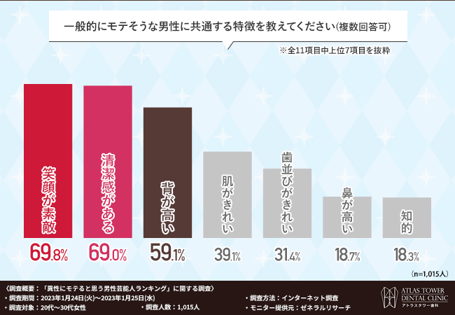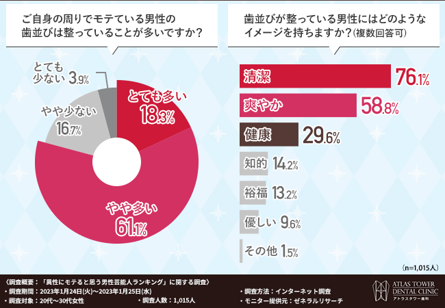 歯並びが整っていることは、モテる要因のひとつとなっているといえそうです。
