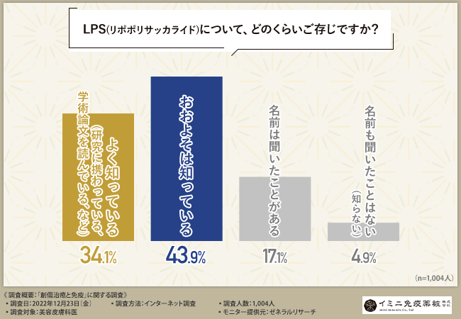 多くの美容⽪膚科医がLPS(リポポリサッカライド)について知っており、免疫に働きかけて創傷治癒に期待できる、と考えていることがわかりました。