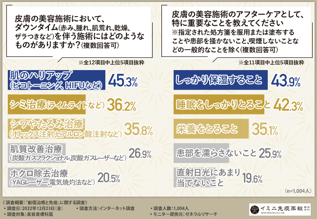 そこで今回、イミニ免疫薬粧株式会社(https://www.imini-immunity.jp/)は、美容⽪膚科医を対象に、「創傷治癒と免疫」に関する調査を実施しました。