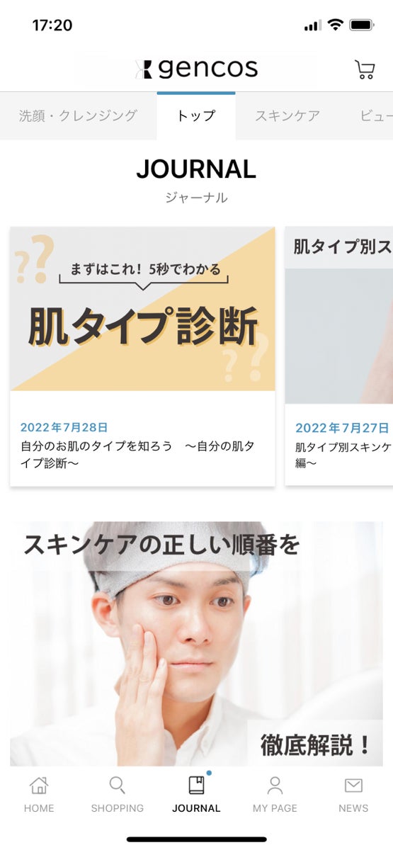 アプリ内「JOURNAL」では基本的な肌のお手入れの仕方から、メイクの手順まで記事が掲載されているので、メンズメイクや、メンズコスメなどの知りたい情報をいつでも見ることができます。