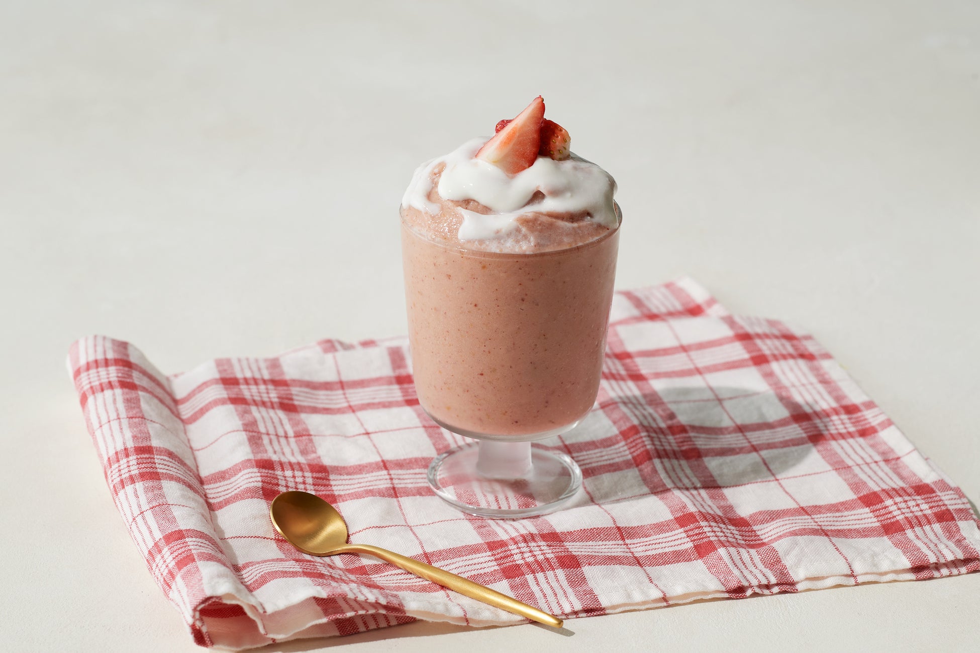 ストロベリースムージーとして生まれ変わった「Koharu」では、真っ赤に実ったいちごにアメリカンチェリーを組み合わせ、甘酸っぱい春の味をたっぷり詰め込みました。