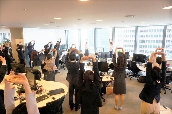 「パソナ体操」という自社オリジナルの体操を作り、朝礼や会議前などに社員が一緒に身体を動かすほか、スーツのまま取り組めるトレーニングジムや健康的なランチの提供などにより、グループ各社や部署の垣根を超えたコミュニケーションを促進。2022年7月には、コミュニケーションアプリ「LINE」を活用したチャットなどによる健康相談や健康コラム、動画配信のほか、産業看護職による保健指導や研修などを提供する「オンライン健康推進室」を設置している