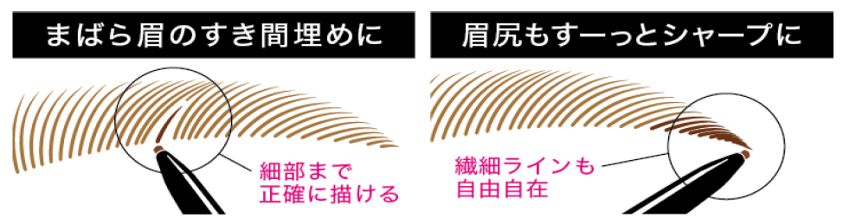 硬さと細さのベストバランスを叶え、0.44mm※1の繊細な線で、リアルな眉を一本一本描き足せます。