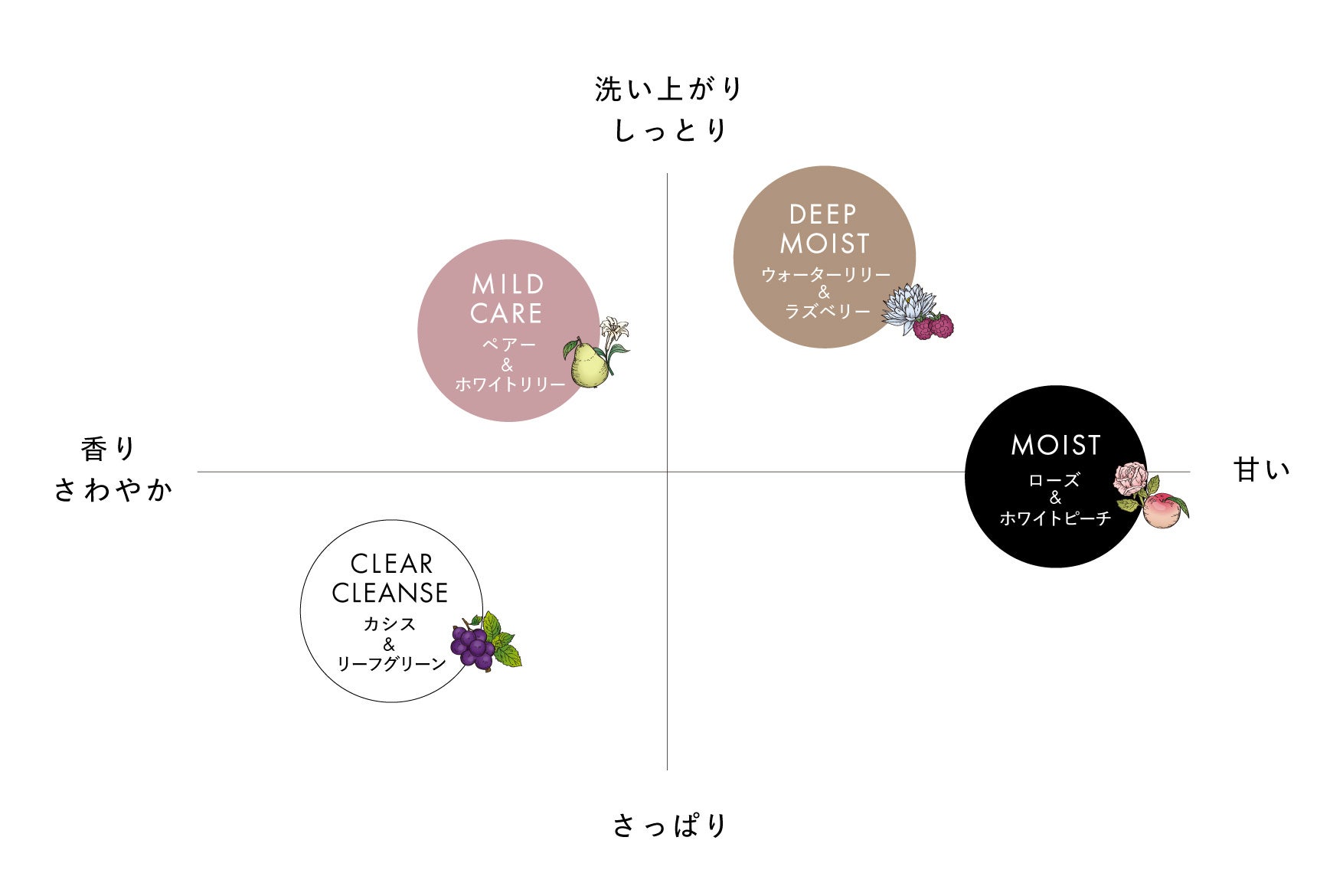 ・モイスト:上品で柔らかなローズとホワイトピーチの香り