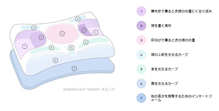 オムニアは、顔と枕の接触を減らしながら快適さを提供し、睡眠ジワや朝のむくみを防止します。