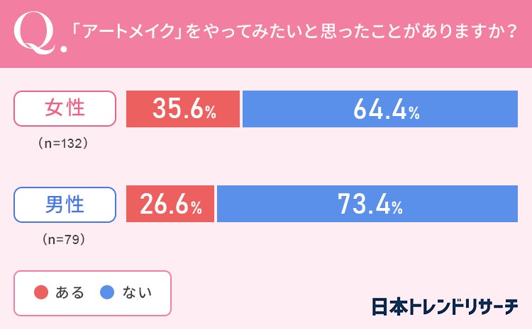 女性の35.6%、男性の26.6%がアートメイクを「やってみたい」と思っているという結果になりました。