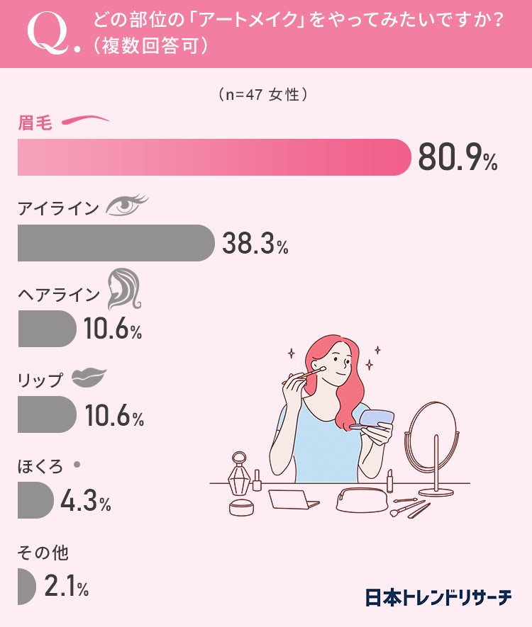 日本トレンドリサーチ(運営会社:株式会社NEXER)は、メディカルブローと共同で「アートメイク」に関するアンケートを実施し、結果をサイト内にて公開したので紹介します。