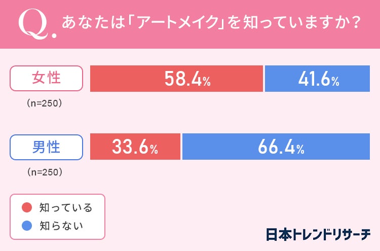女性の58.4%、男性の33.6%がアートメイクを「知っている」と回答しました。
