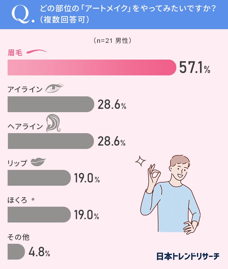 さらに男性にも、どの部位のアートメイクをしてみたいかを聞いてみました。