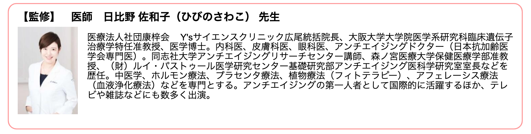 この結果に対し、医療法人康梓会Y’sサイエンスクリニック広尾統括院長で皮膚科医の日比野佐和子先生は、「特に効果的でパワフルな乾燥肌対策、そして、季節の変わり目のゆらぎ肌対策としては、肌の代謝を高め、保護機能をサポートする成分には、動物由来成分が多くスキンケアとしては、動物由来成分は必須です。肌につけるスキンケア剤もそうですが、食べ物などのインナーケアも、乾燥や寒暖差による肌ダメージの回復を助けてくれるようなものを意識することで肌本来のもっているチカラを守ってあげる一助になります」と話します。