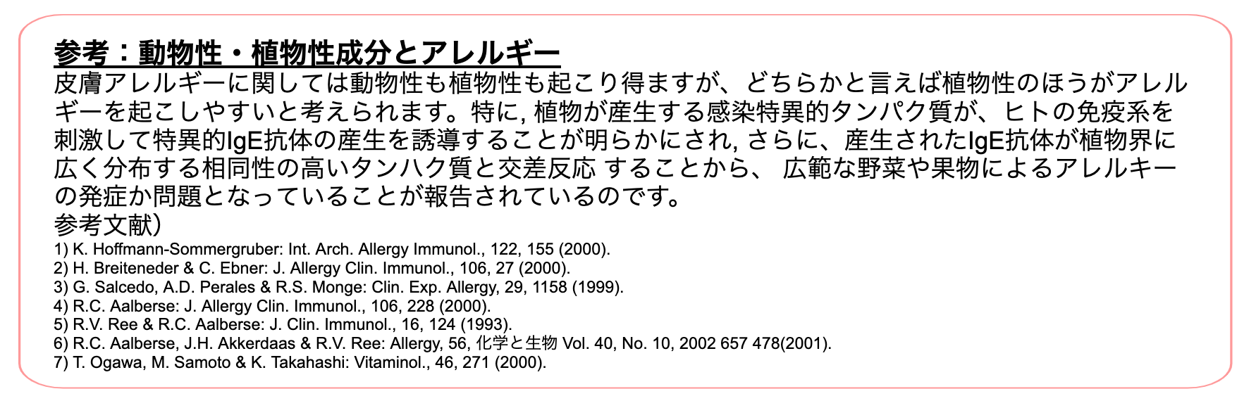 スクワランなども動物由来のものが効果的であることがわかっているなど、人間の肌は動物性のタンパクを主に構成されており、動物性のほうが肌になじみやすく、皮膚への浸透性が高いことから保湿効果が高いといわれています。