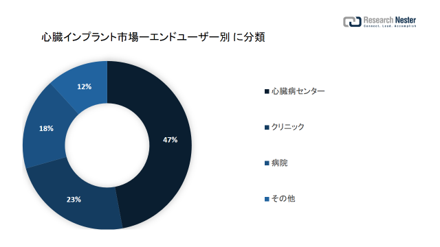 エンドユーザーに基づいて、病院セグメントは、2035年末までに市場で最も重要なシェアを獲得することに起因しています。セグメントの拡大に起因する主な要因は、世界中の病院で心臓インプラントと多数の心臓専門医を使用するための特別に訓練された医療専門家の存在です。また、世界の多くの病院は、病院の環境での心臓インプラントの利用率の増加のもう1つの要因と考えられています。たとえば、経済協力開発機構 (OECD) は、英国の病院の数が 2015 年の 1,882 から 2020 年の 1921 に増加したと述べています。一方、米国では、2015 年の 5,564 人から 2019 年には 6,090 人に増加しました。