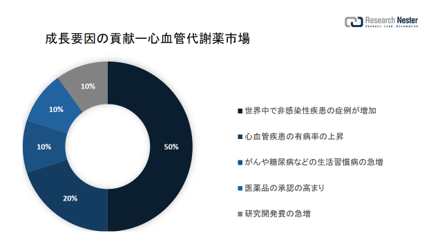 質問: 心血管代謝薬市場の成長を牽引する主な要因は何ですか?