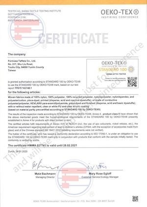 350を超える有害化学物質が対象となる厳しい分析試験にクリアした製品だけに認証が与えられ、世界最高水準の安全な繊維製品として認められています。作る人、使う人に安心安全な生地です。