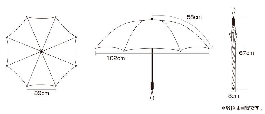 - 直径約102cm(一般的な雨傘と同等サイズ)