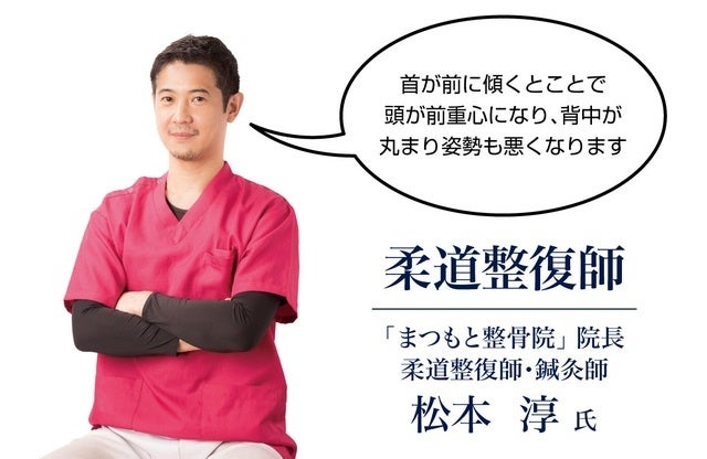 スマホを触ったり、パソコンを使用する際、ついつい首が前に出て、あごが上がり、背中が丸くなるといった姿勢になってしまっている方もいらっしゃるかもしれませんね。