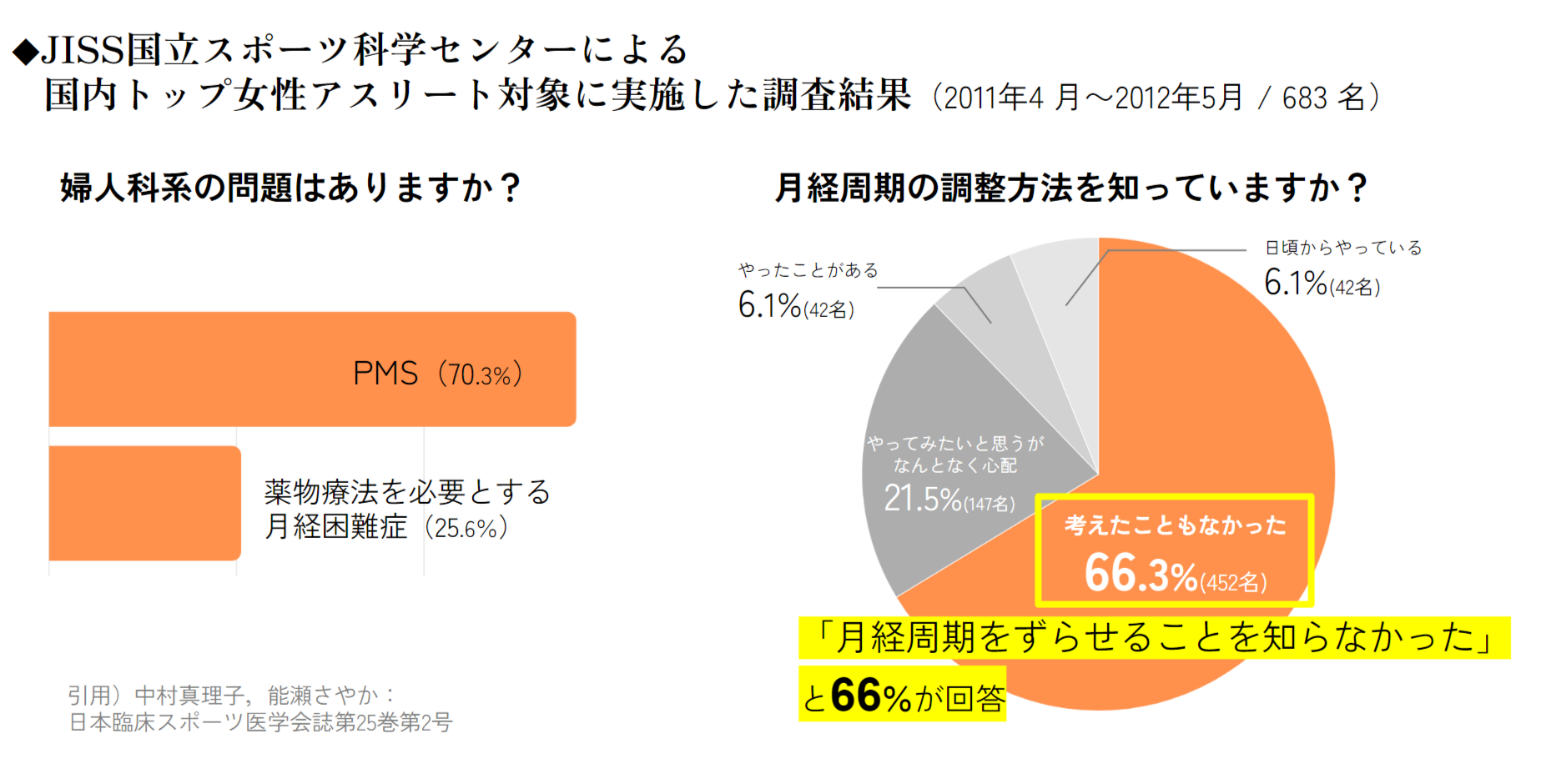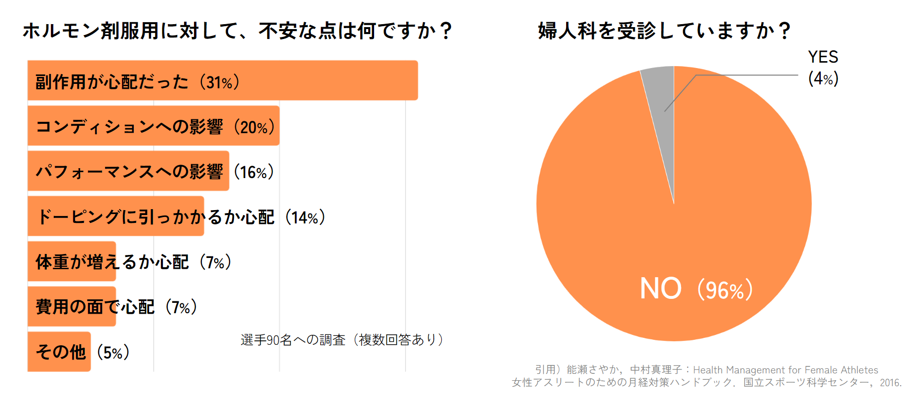 かねてより、海外の女性アスリートの多くは、ピルを用いて生理の周期を調整し、大事な試合の際に体調に影響が出ないようにしています(資料1)。しかしながら日本国内においては、ピルによる生理周期の調整が可能であることやピルを服用することで生理痛を軽減できるなどの効用についての知識や理解促進が進んでおらず、女性アスリートでもほとんど利用されていないのが実情です(資料2)。
