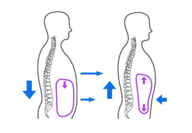 腹部付近にベルトを巻くことで、腹腔圧を上昇・体幹の支持性を増強。姿勢の安定を図ります。