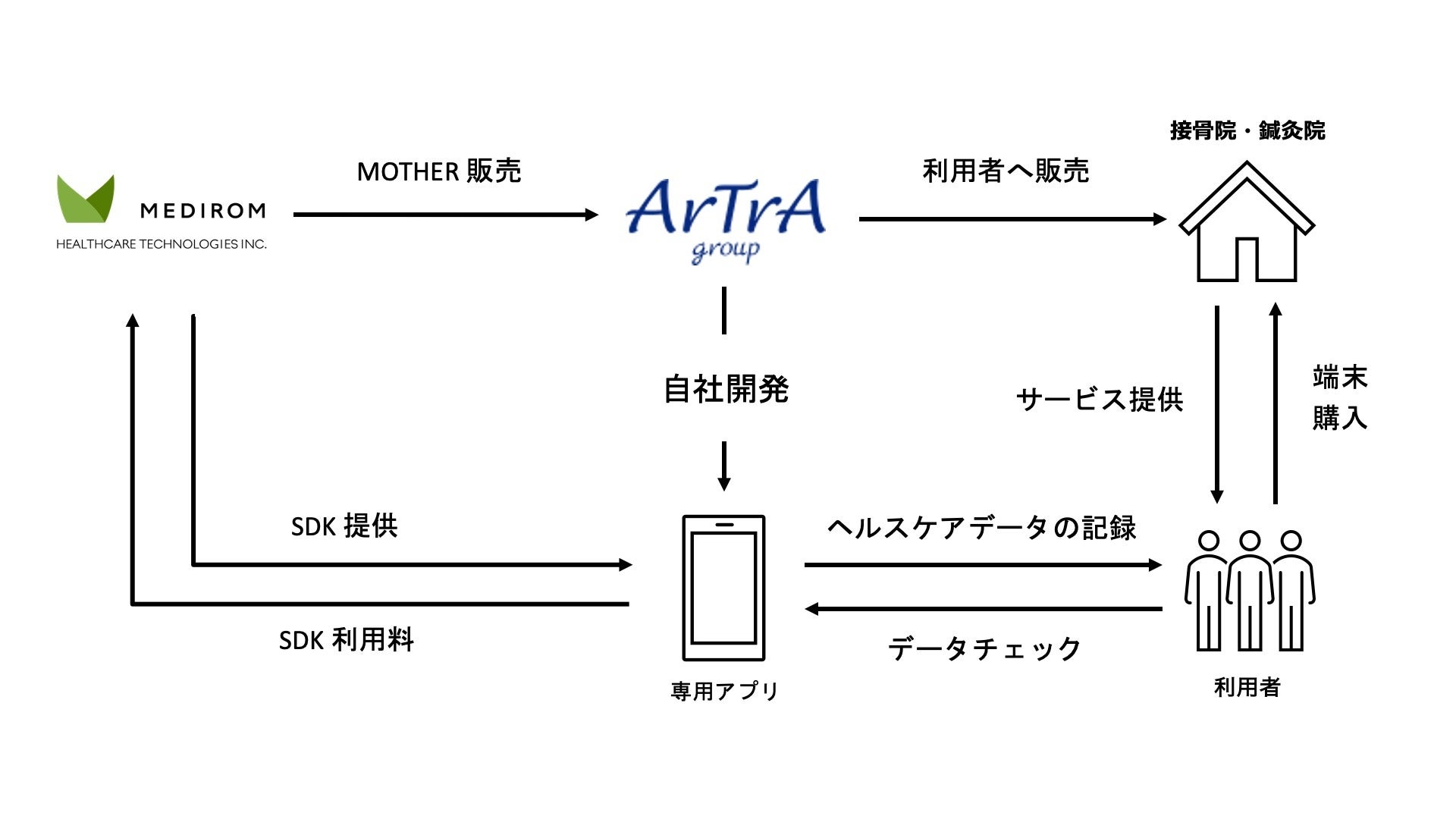 ヘルステック事業を展開する株式会社メディロム(本社:東京都港区、代表取締役:江口 康二、米国Nasdaq上場 NASDAQ: MRM 以下「メディロム」)と接骨院・鍼灸院の支援事業を展開するアトラグループ株式会社(本社:大阪府大阪市西区、代表取締役社長:久世 博之 以下「アトラグループ」)は、メディロムが開発した24時間365日充電不要のスマートトラッカー「MOTHER Bracelet ®︎」を接骨院・鍼灸院・マッサージ院(以下「施術所」)へ導入していくため「事業提携に関する基本合意書」を締結いたしました。