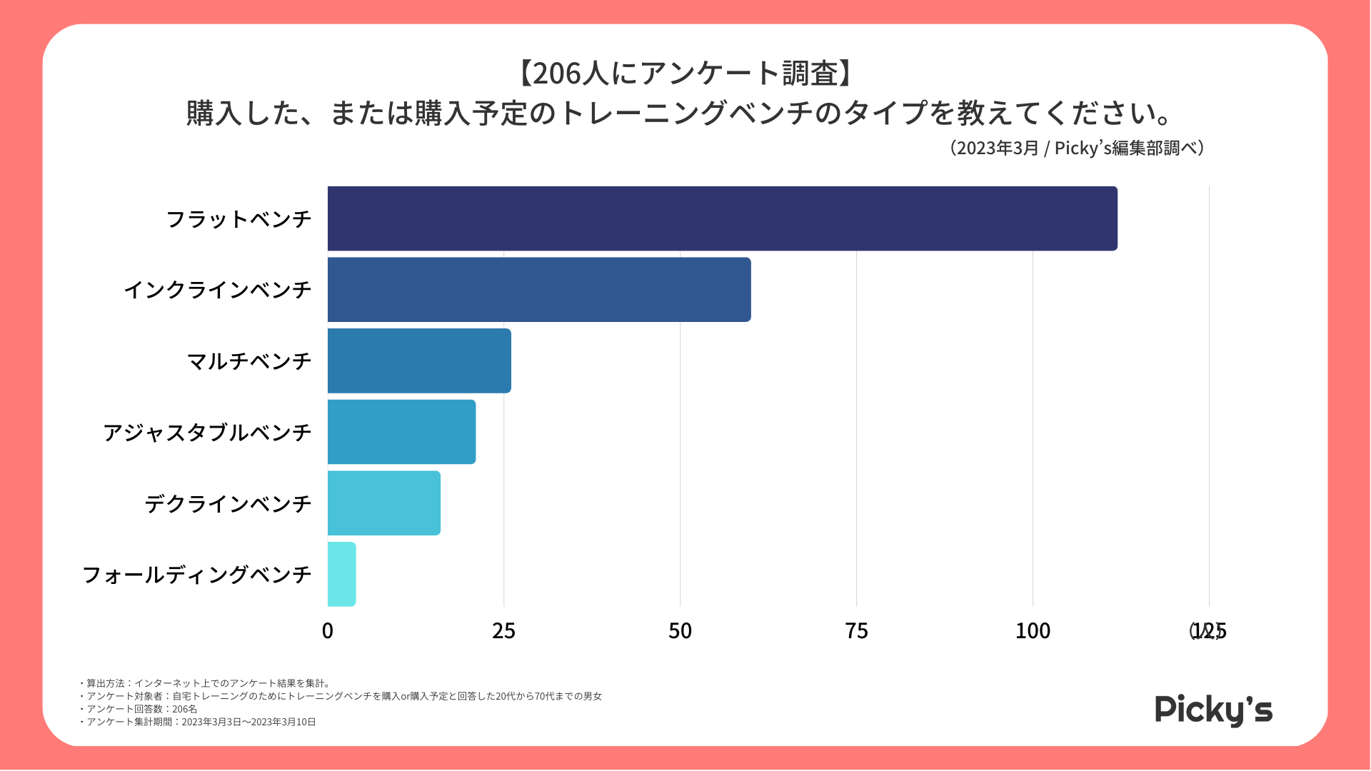 「フラットベンチ」が一番多く、その次に「インクラインベンチ」が選ばれているようです。