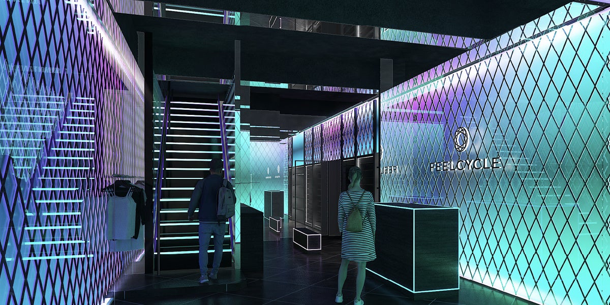 「FEELCYCLE 名古屋」は、東海で初めて映像演出を取り入れたスタジオとなります。最先端の音楽に加え、大型スクリーンに映し出される迫力の映像を目の前に行うレッスンは、一瞬にして非日常空間へと引き込まれ、音楽に合わせて没入感に浸ることができるとともに、思いきり身体を動かす爽快感を味わえます。