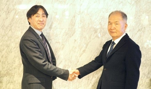 <左:上原吉就氏 福岡大学スポーツ科学部/福岡大学病院 予防・抗加齢・再生医療センター 教授/博士(医学) 右:株式会社レイデルジャパン 代表取締役 李ビョング>