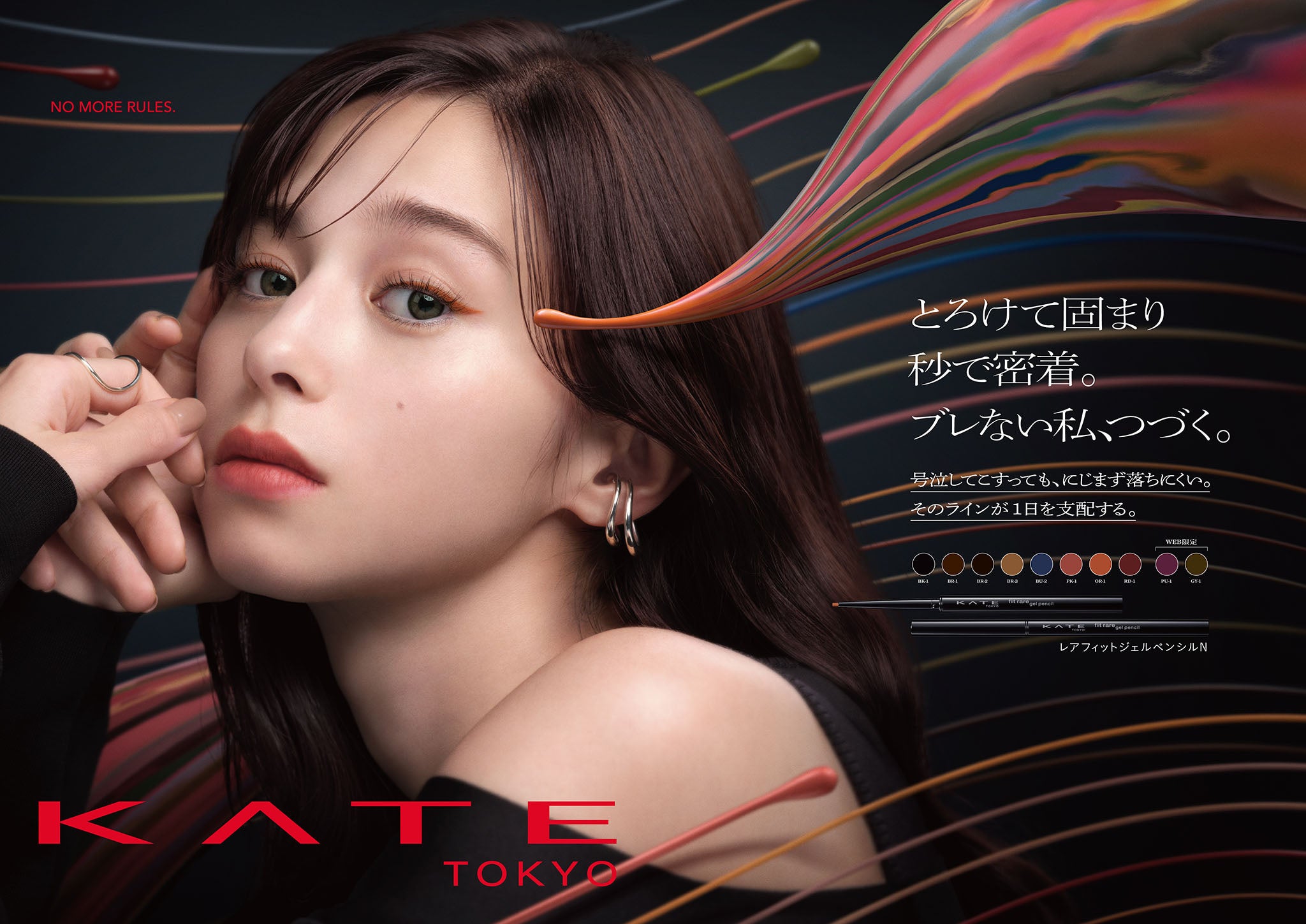 また、とろけるような描き心地から、わずか10秒で速乾する「ケイト レアフィットジェルペンシルN」や、すっぴん風ツヤまつ毛に仕上がる「ケイト ラッシュフォーマーEX(クリア)」、月光ツヤ美肌に仕上がる「ケイト ムーンプレストブライトパウダー」も同日発売いたします。