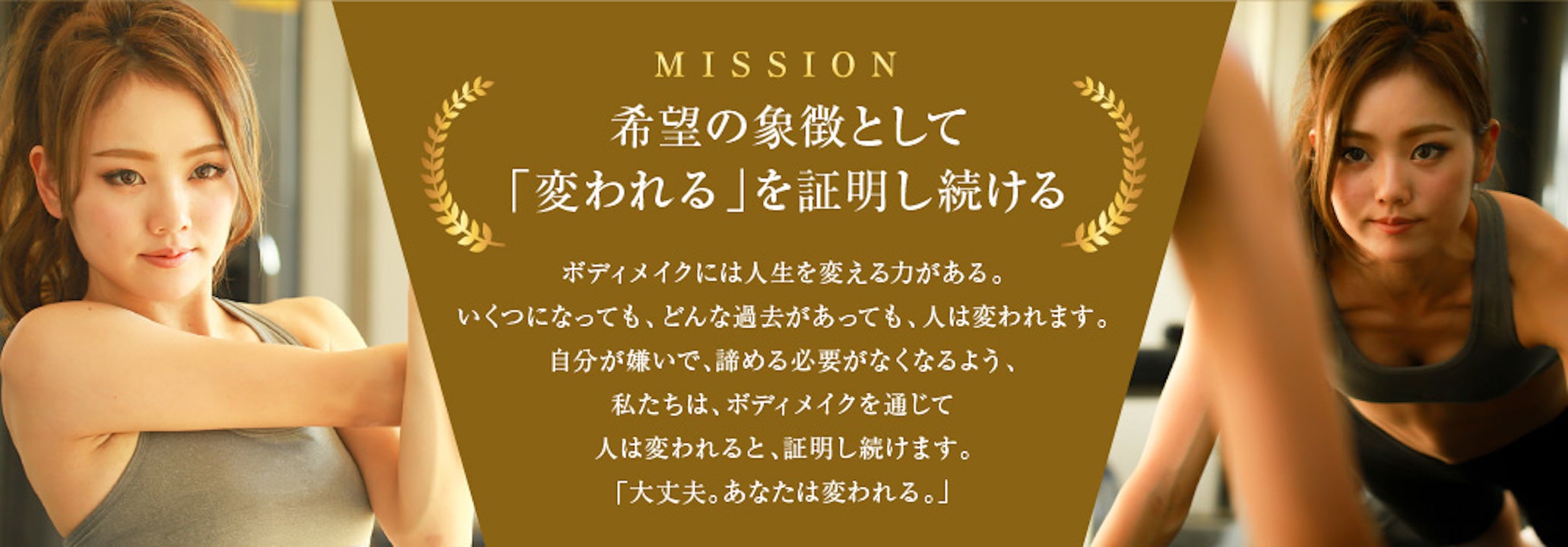 全てのトレーナーが、ボディメイクを通じて人生が変わった経験を持っており、何歳になっても、どんな過去があっても、「人は変わることができる」のだと、証明し続けることをミッションとしております。
