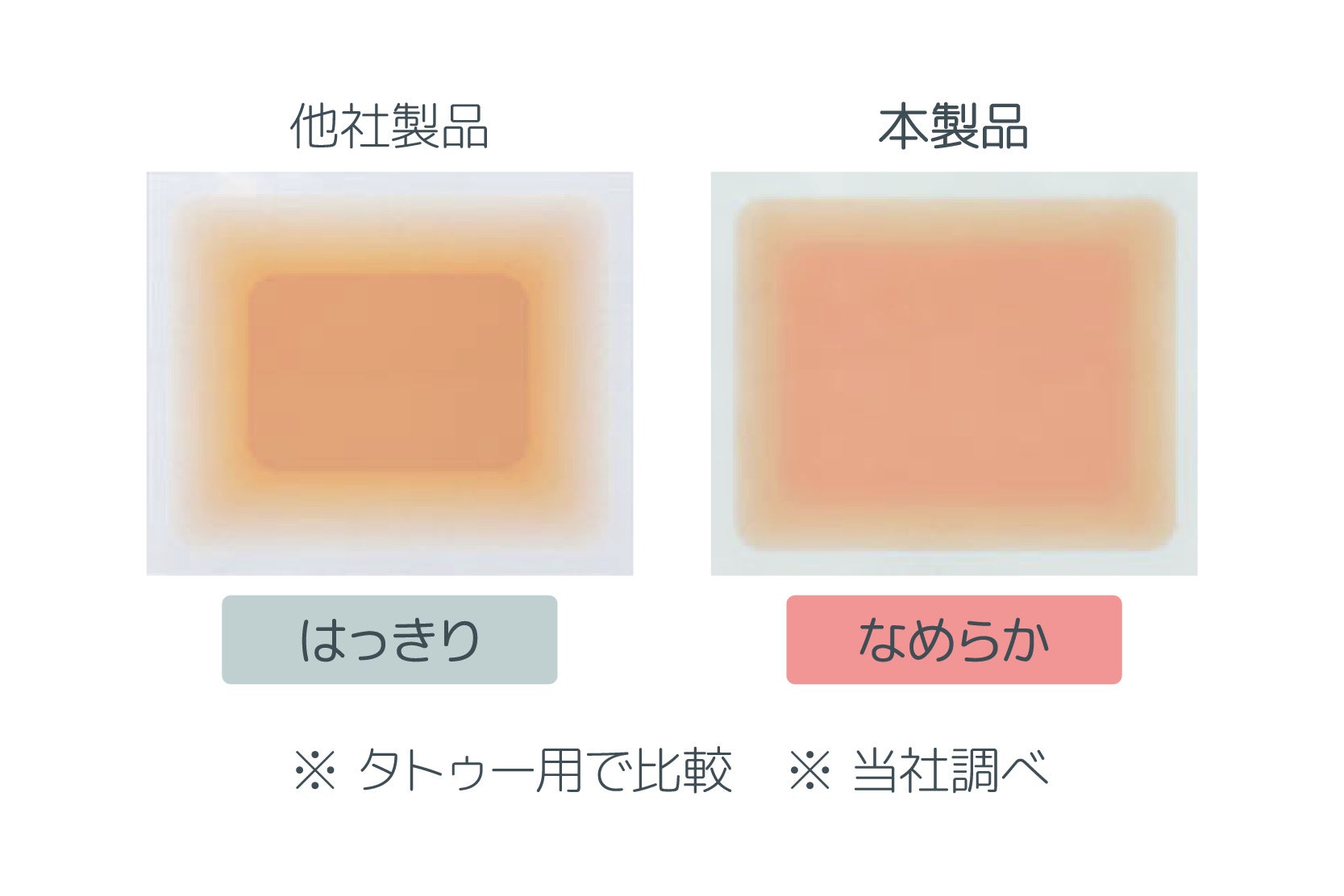 0.02mmの極薄フィルムを実現したことにより、貼った場所が目立たず、貼った時の異物感や突っ張り感もないため、貼っていることを忘れてしまう程自然なつけ心地です。また、シールの反射率を従来の他製品に比べて75%カットしたことでシール特有の不自然なテカリがなく、まるで本物の肌のような見た目になるとともに、特許取得済みのなめらかで精巧なグラデーションによって肌とシールの境目も目立たず、自然に肌に馴染みます。