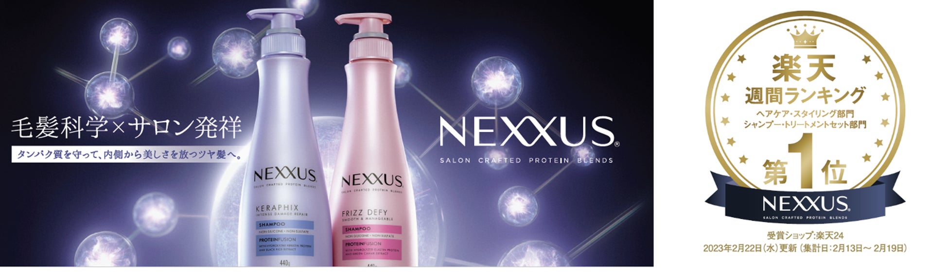ユニリーバ・ジャパン・カスタマーマーケティング株式会社(本社:東京都目黒区、代表取締役 社長:ジョイ・ホー)が展開する、約40年、“毛髪科学”を研究し続け、髪悩みに応じてタンパク質に着目した、新ヘアケアブランド「NEXXUS(ネクサス)」が、楽天週間ランキング「ヘアケア・スタイリング部門」・「シャンプー・トリートメント部門」の2部門にて、売上1位※1を獲得しました。