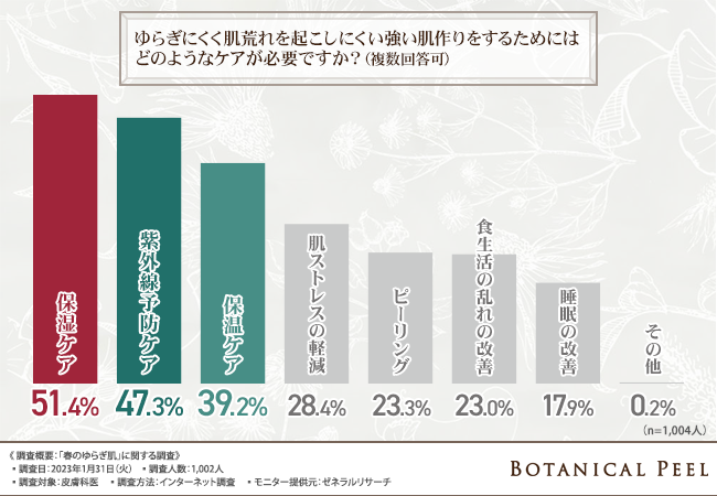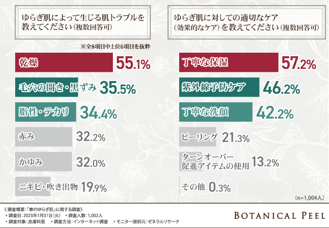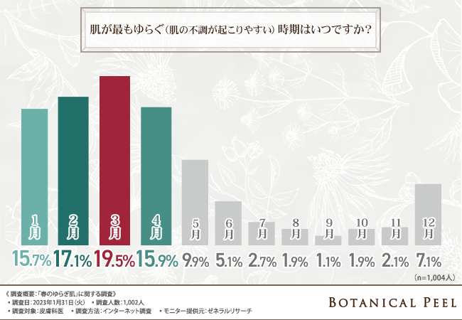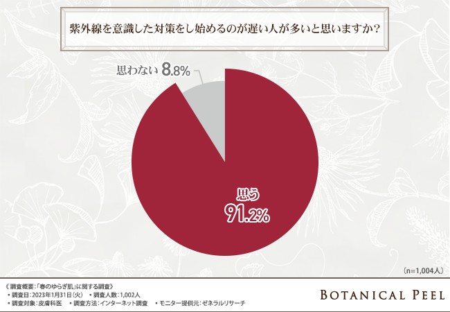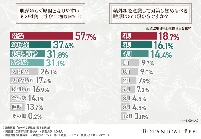 そこで今回、スキンケアブランド『BOTANICAL PEEL』https://www.botanical-peel.com/)を販売する株式会社CREDEAは、皮膚科医を対象に、「春のゆらぎ肌」に関する調査を実施しました。