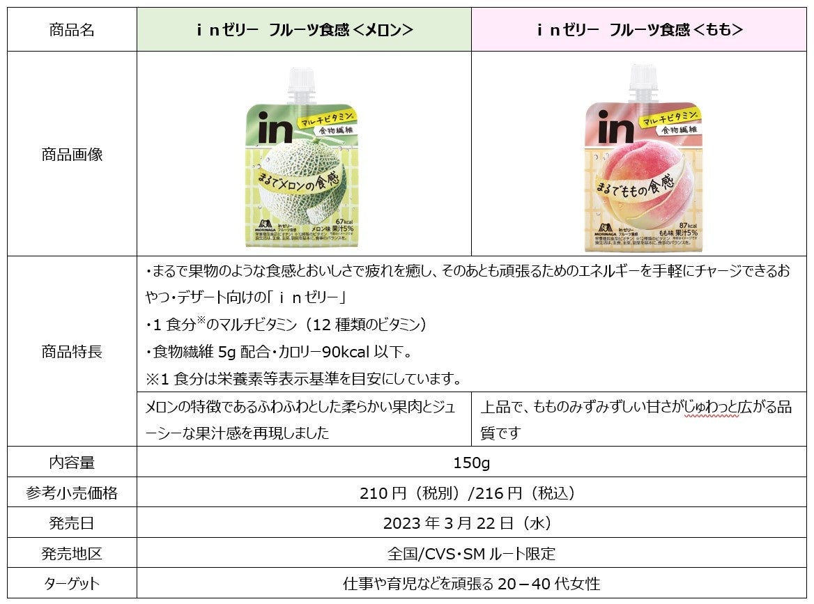 森永製菓株式会社(東京都港区芝、代表取締役社長・太田 栄二郎)は忙しい現代人の健康維持と毎日の生活を前向きにサポートする「inゼリー」ブランドから、まるで果物のような食感・美味しさで頑張るためのごきげんをチャージできる「inゼリー フルーツ食感<メロン>」を3月22日(水)より新発売いたします。また、シリーズ品の「inゼリー フルーツ食感<もも>」は1食分のマルチビタミンを追加した品質で、同日リニューアル発売いたします。