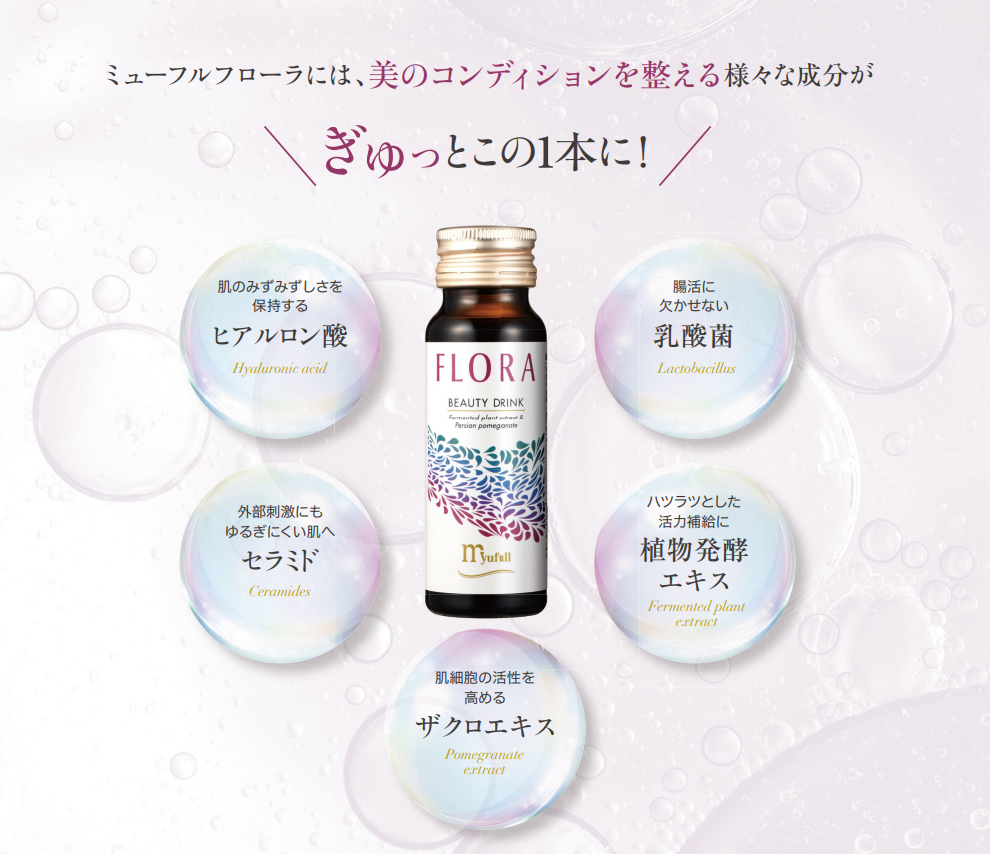 若さの秘訣!サーチュイン効果に注目した“飲む美容液”『ミューフルフローラ』の一般発売を開始