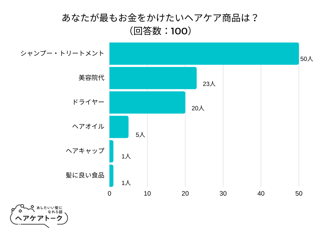「あなたが最もお金をかけたいヘアケア商品は?」とアンケート調査した結果、1位は『シャンプー・トリートメント』でした。