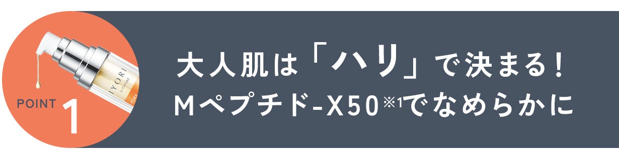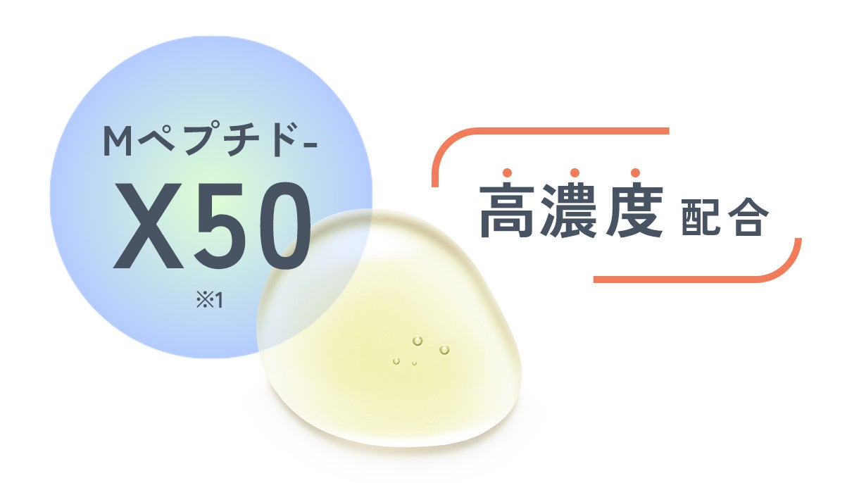 キー成分「Mペプチド-X50※1」を高濃度で配合。まるでドローンのように、「ハリつや不足」「乾燥」「キメの乱れ」等を含む大人の肌悩み原因を見つけてアプローチ。美容液成分をすばやく届け※2、ハリのあるなめらかな肌へ導きます。