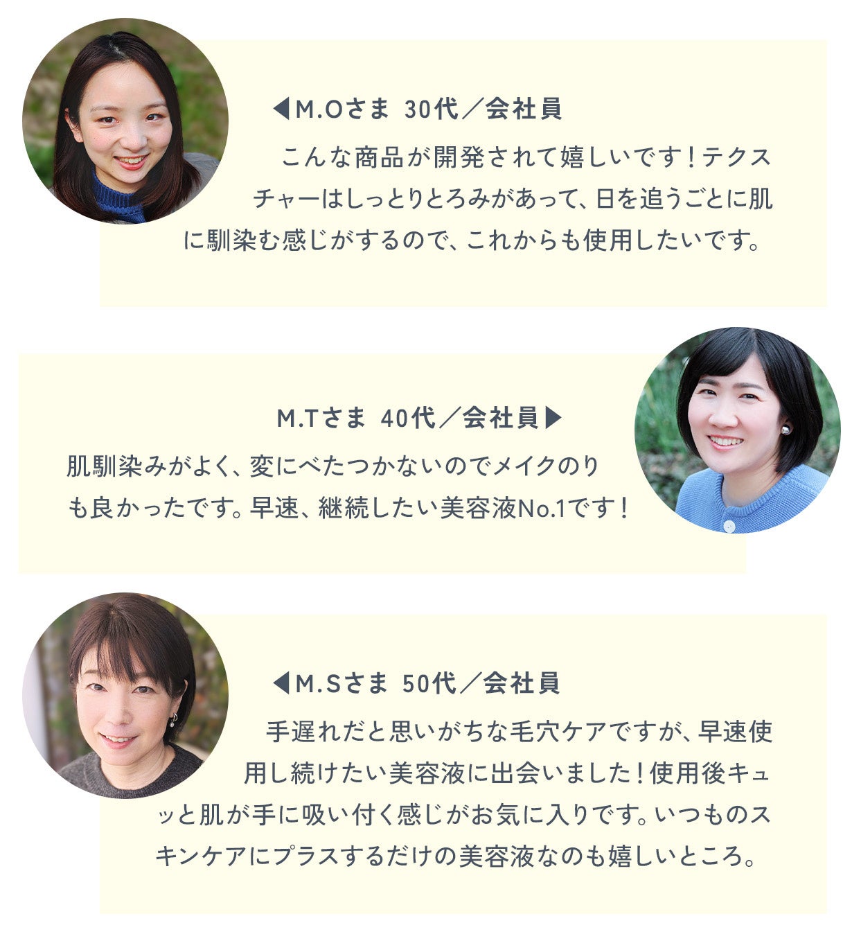 つけた後、潤いを感じさせる「コメ発酵液※1」を水の代わりにベースとして使用。美容液成分を肌の奥※2まで送り届けるブースター効果があり、保湿効果も高められます。