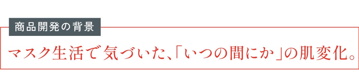 マスク生活による肌悩みについてリサーチを重ねる中で、30~40代の方の多くが毛穴やハリ、キメの乱れといった大人肌の悩みを抱えていることが分かりました。マスク生活により、いつの間にか顔印象が変化していることもあり、「マスクを外すのが怖い」と感じられる方も多くいらっしゃるようです。