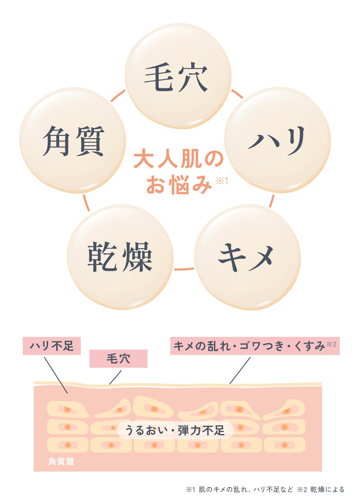 異なり、加齢が進むとお肌の弾力が失われ、さまざまなトラブルが目立つようになります。