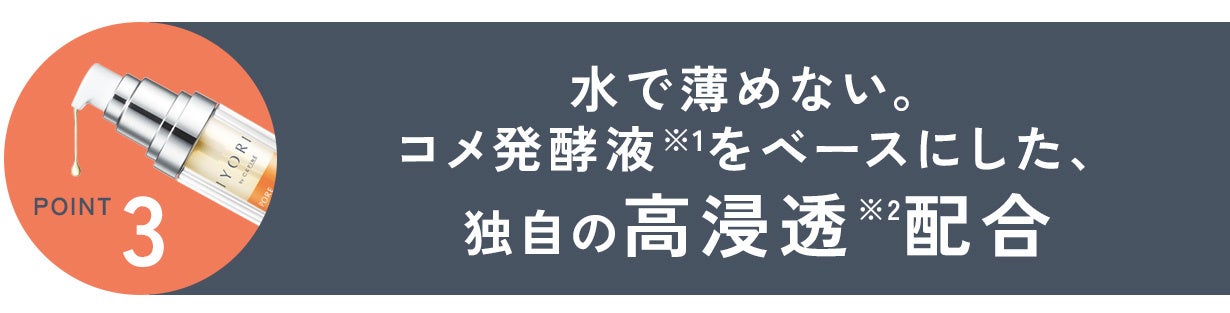 24時間365日、紫外線・乾燥・加齢など様々なダメージに晒される現代女性の肌悩みは、十人十色。「IYORI」は、プロ用コスメメーカーとして実績を積んだセフィーヌの皮膚理論・エビデンスに基づいた高機能スキンケアをコンセプトに、一人ひとりのお肌に向き合い、悩みから解放される喜びを実感していただける「I(自分)にYORI(より)そう」ブランドです。