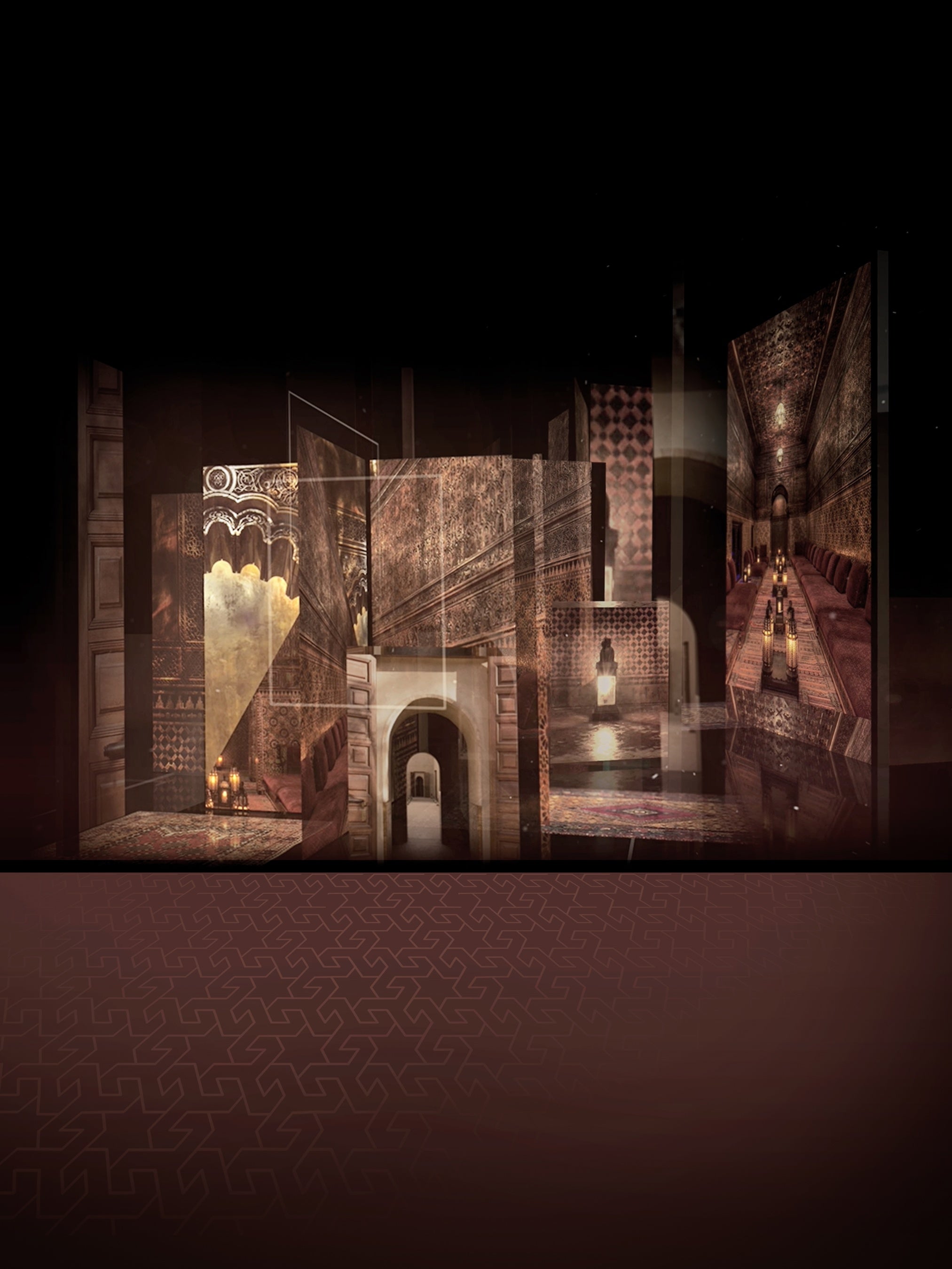 緑したたるモロッコの夜の庭、絢爛な木工細工で飾られたアラブの宮殿へと続く旅は