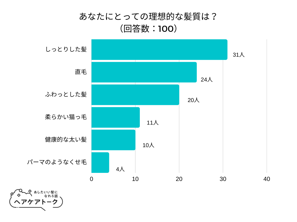 100人にアンケートを行ったところ、「しっとりした髪」と回答したのは全体の31%でした。