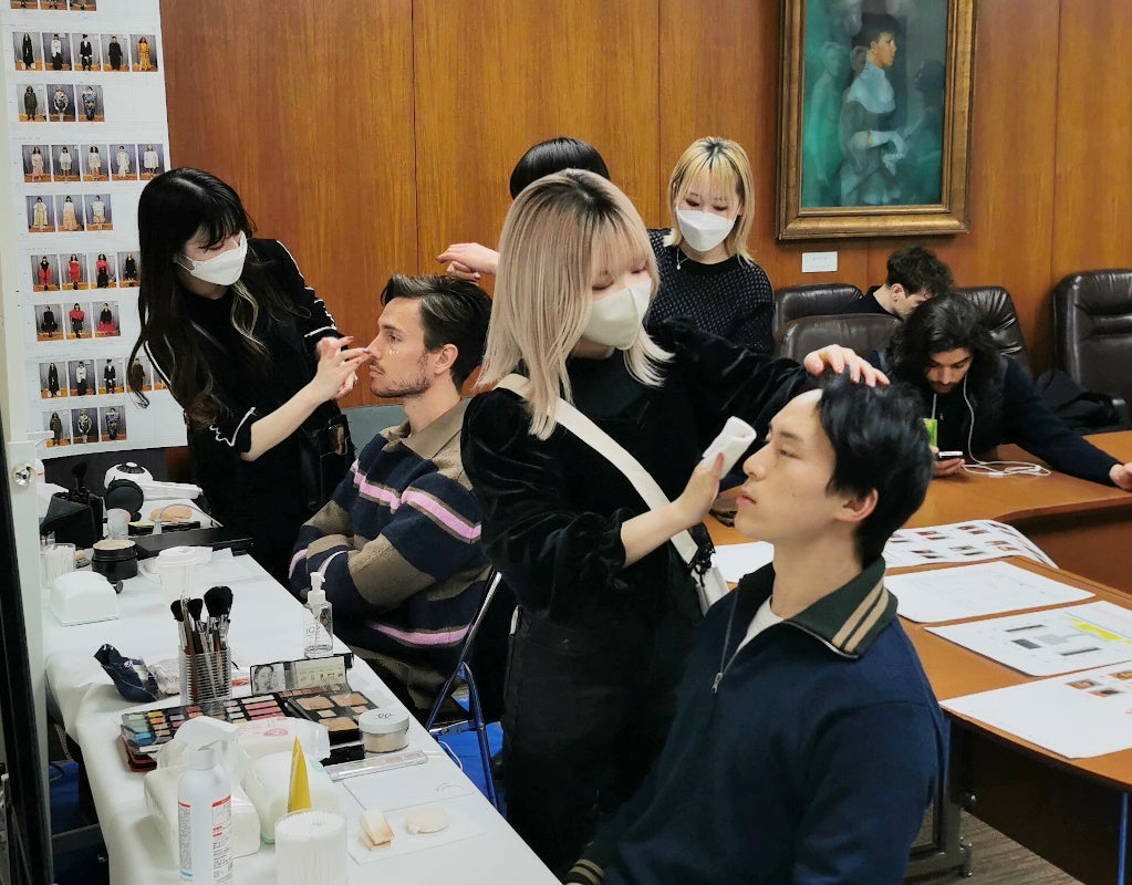 事前打ち合わせの時、プロ目線でのアドバイスをいただき、各デザイナーの長所を最大限に引き出すことに最善を尽くしてくださいました。それにより、私たち各デザイナーのテーマをさらに効果的に表現することができました。また、異なるモデルに対して全体の雰囲気を統一するだけではなく、個々のモデルの顔や髪の特徴も把握した上で表現してくださり、とても綺麗でした。モデルの着替えの時間によってヘアメイクチェンジの時間はわずか2分程しかありませんでしたが、メイク、ヘアスタイル、帽子をかぶる場合も一人一人きちんとチェックし対応していただいたことに、とても感動しました。