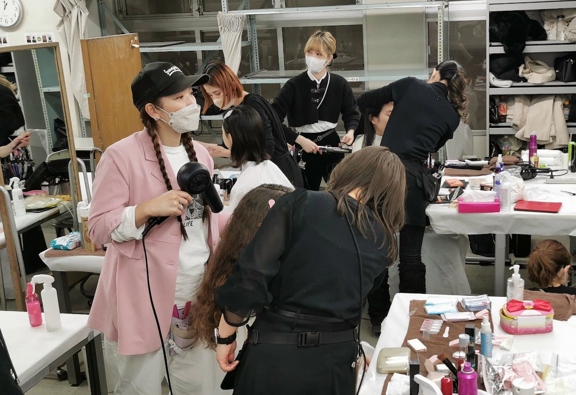学生とのミーティングにおいては、学生からの様々なイメージ案に対し専門的な視点でコメントや提案をしていただき、ファッションショーでは、限られた条件の中で最大限に学生のイメージを活かし表現していただきました。