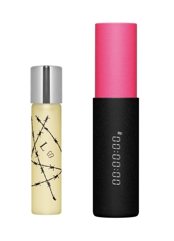 蓋を開けるとLIMI feuのショッパーカラーである鮮やかなネオンピンクが、フロストボトルにはテキスタイルで使用した有刺鉄線のモチーフをプリント。上品なシルバー仕上げのボトルキャップとネオンピンクの対比は、繊細かつ大胆な雰囲気を備えている。ローズ、ブラックペッパー、ジャスミン、イランイランをブレンド。リラックスに誘われつつ次のステップに向けて準備を整えていくような印象の香りに。爪の根元の保湿や指先のマッサージオイルとして、また肩や首にロールオンすることでリフレッシュオイルとしての使い方も可能。