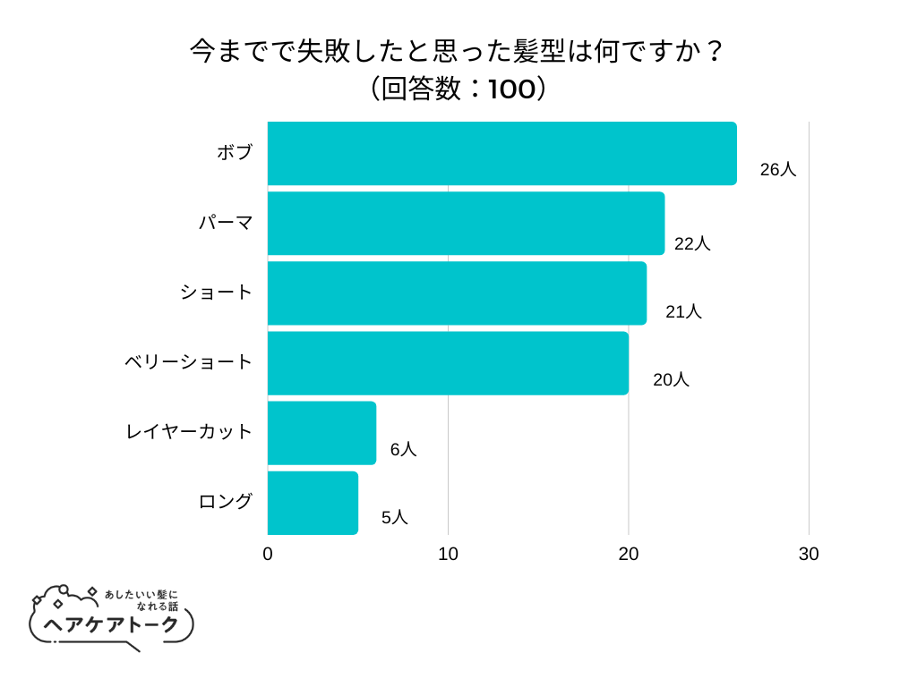 「今までで失敗したと思った髪型は何ですか?」とアンケート調査した結果、1位は『ボブ』でした。