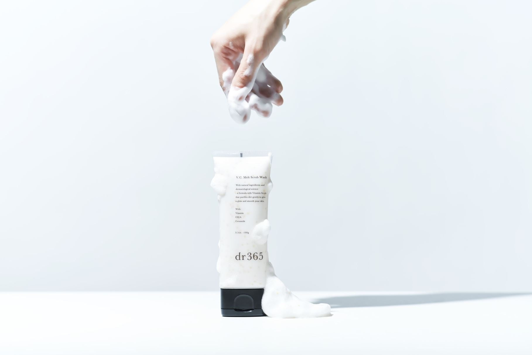 dr365の独自製法で石けんをやわらかくペースト化した「生石けん」に、刺激や負担のない崩壊性のビタミンスクラブをブレンドした新感覚の洗顔アイテム。