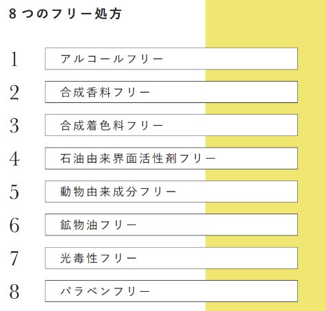 多くの方がお使いいただきやすいよう、8つのフリー処方を採用。