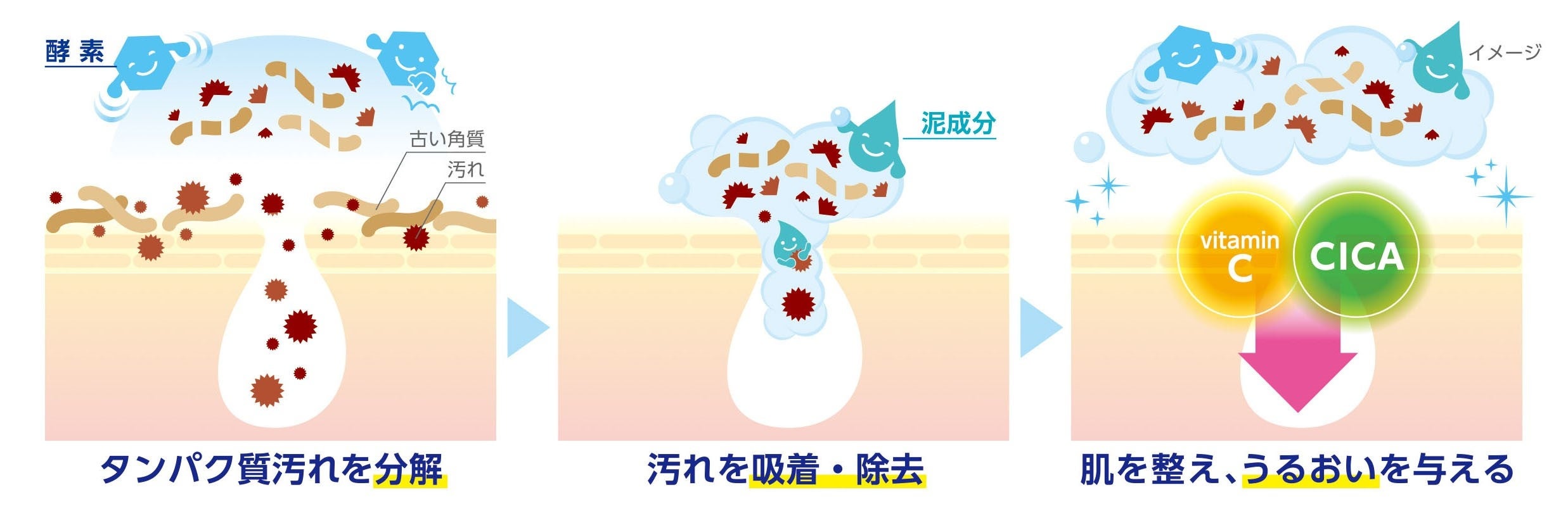 この商品は、活きたまま※1の酵素※2が、毛穴の黒ずみ汚れや角栓、ざらつき、くすみ※3を取り去り、透明感のあるつるつるすべすべな肌に導きます。