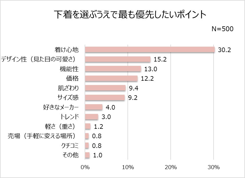 - 3.日々肌に触れるパートナー、下着選びの優先ポイント1位は「着け心地」と3割以上が回答。